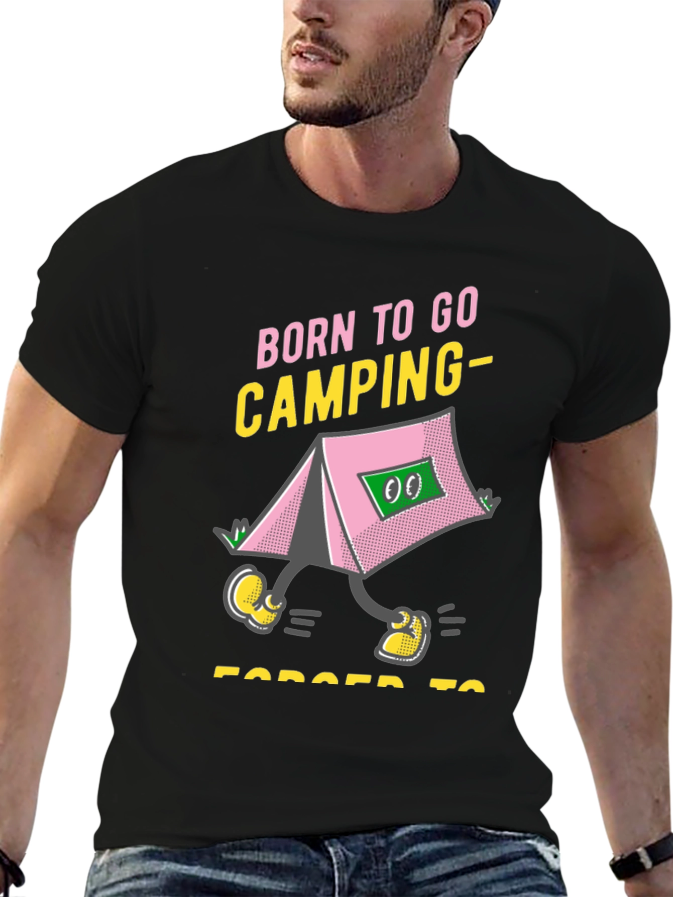 Show off your love for the outdoors with this unique graphic t-shirt! Made from a comfortable fabric, this black tee features a playful design of a walking tent and the phrase "Born to Go Camping." It's perfect for casual wear, camping trips, or just lounging around. The eye-catching design is sure to spark conversations and showcase your adventurous spirit. Whether you're hitting the trails or relaxing by the campfire, this t-shirt is a must-have for any camping enthusiast. Grab yours today and let the world know you were born to explore!