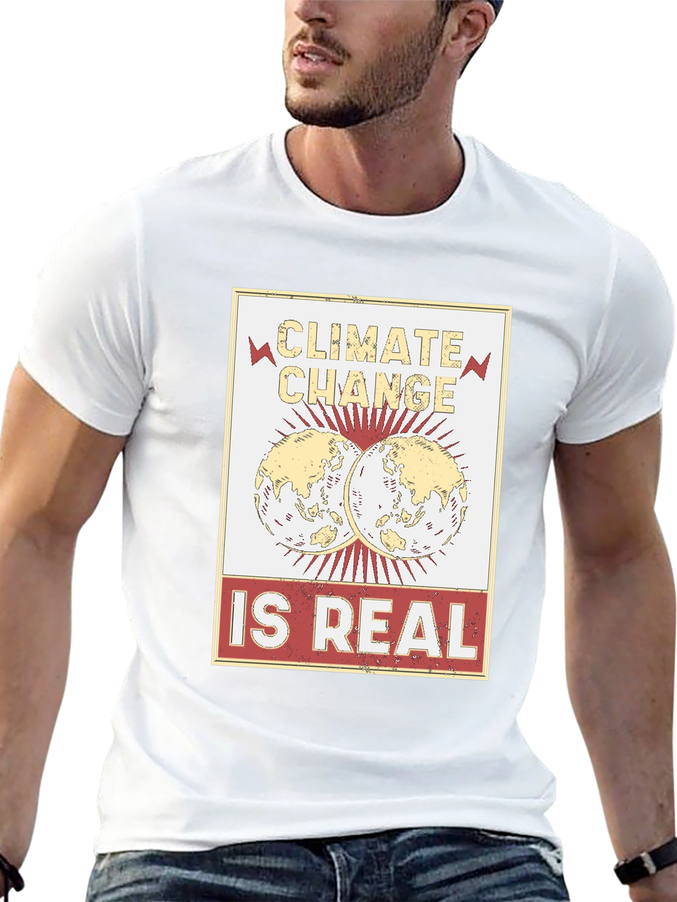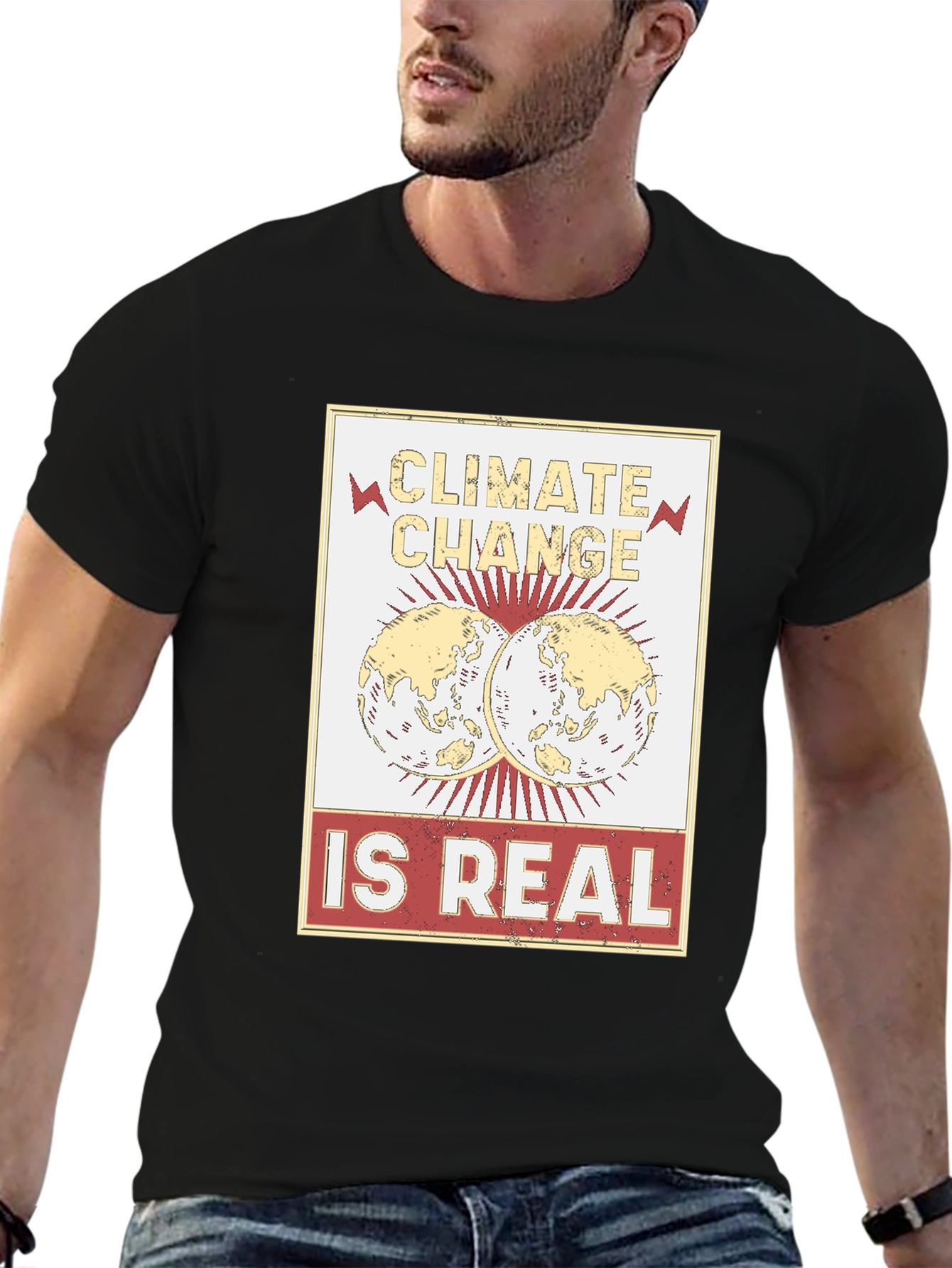 Show your support for environmental awareness with this striking black t-shirt. The shirt features a bold graphic design with two world globes and the text "Climate Change IS REAL". Made from comfortable materials, this t-shirt is ideal for everyday wear, activism events, or casual outings. It's a perfect way to make a statement and spark conversations about the importance of climate action. Get yours today and wear your belief!