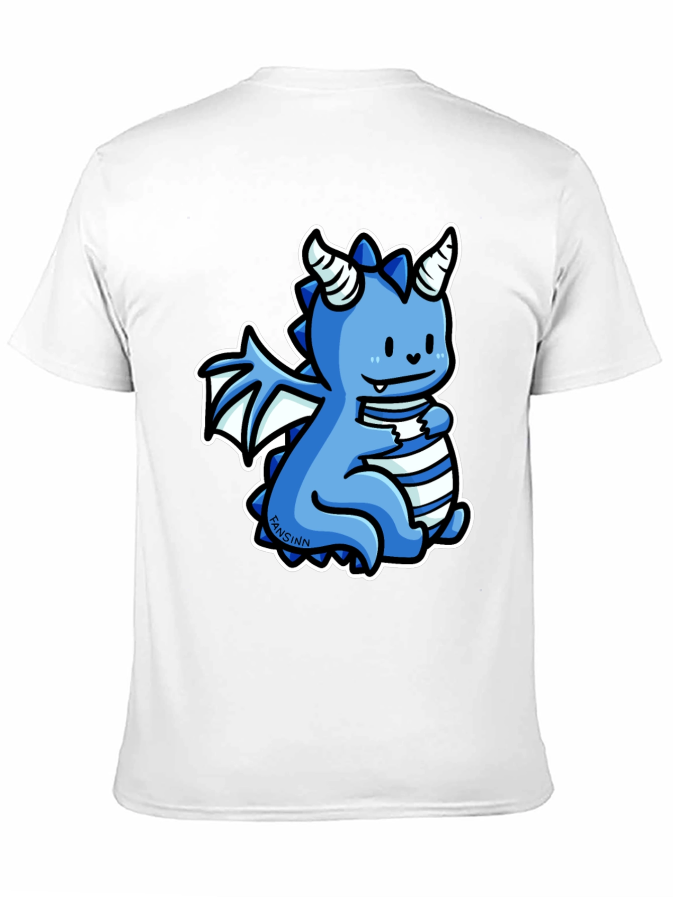 Show off your unique style with this black t-shirt featuring an adorable blue cartoon dragon graphic. The design showcases a charming dragon with cute eyes, small wings, and striped detailing, outlined with a clean white border. Perfect for casual wear, this comfortable tee adds a playful touch to any outfit. Ideal for dragon enthusiasts, cartoon lovers, or anyone who enjoys a fun and whimsical look. Made with soft, breathable fabric for all-day comfort. Wear it to school, the park, or simply lounging at home.