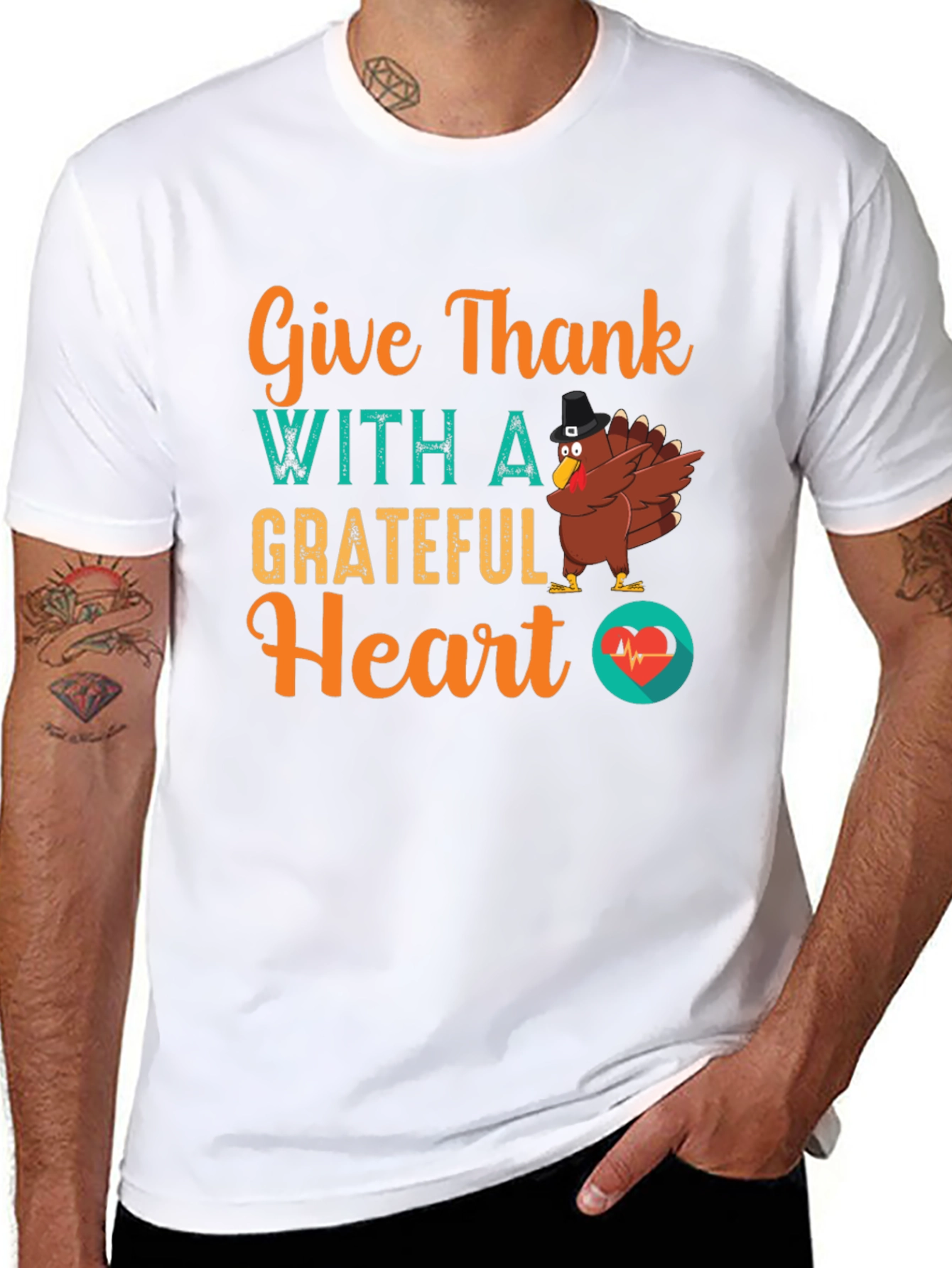 Give Thanks Grateful Heart Turkey Graphic Tee