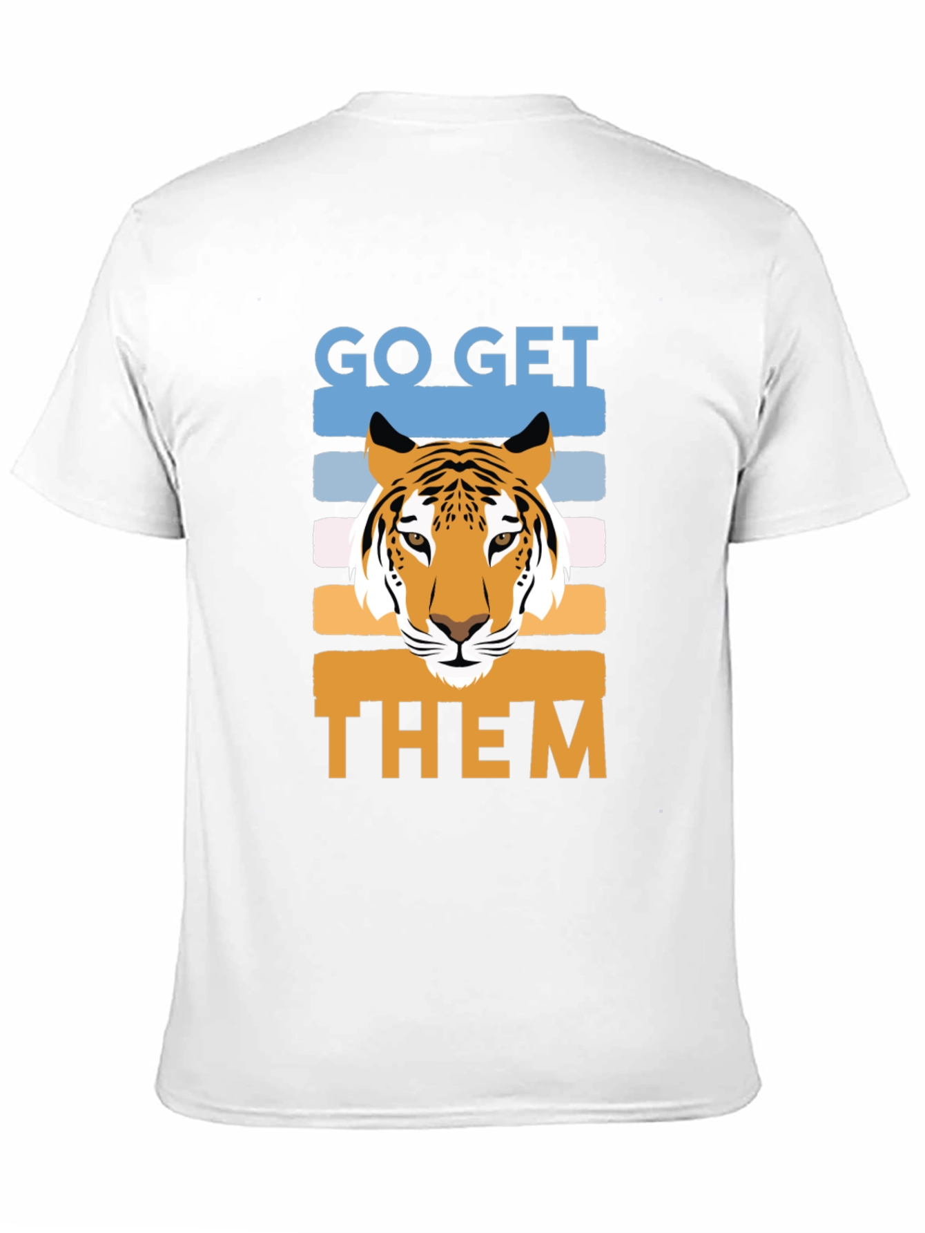 Show your wild side with this stylish black T-shirt featuring a bold 'Go Get Them' graphic! The design includes a striking tiger face set against a background of retro-inspired colored stripes. Made from a comfortable-looking fabric, this tee offers a great fit for everyday wear. Perfect for casual outings, sports events, or just lounging around, this unique shirt is sure to make a statement. Pair it with jeans or shorts for an effortlessly cool look. Get yours today and unleash your inner tiger!