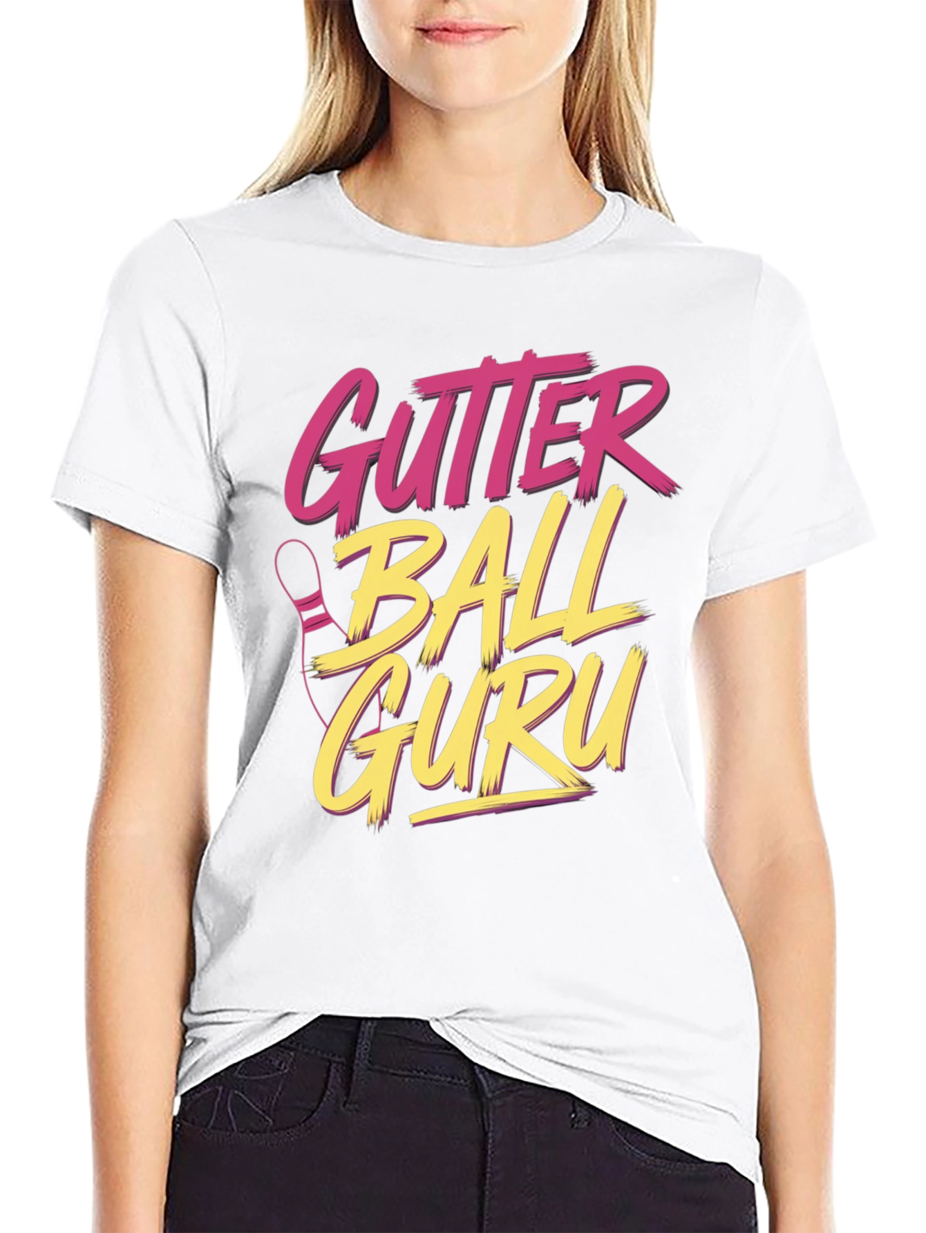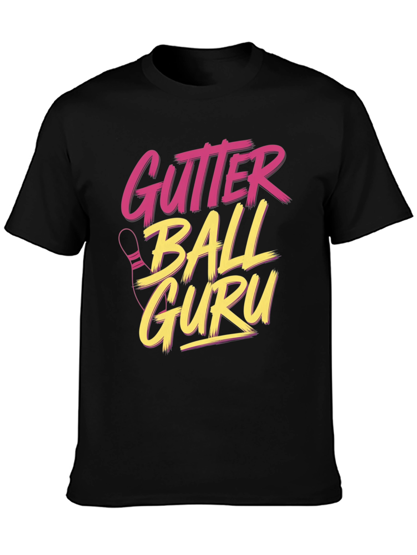 Strike up some fun with this Gutter Ball Guru T-shirt. Featuring a bold, retro-inspired design, the shirt boasts the phrase "Gutter Ball Guru" in vibrant pink and yellow lettering, playfully accented by a bowling pin. Made from a comfortable, breathable fabric, this tee is perfect for casual wear or showing off your love for bowling at the lanes. This fun and unique design is perfect for bowling enthusiasts who appreciate a touch of humor and vintage style. Whether you're a seasoned pro or just enjoy a casual game with friends, this t-shirt is sure to be a conversation starter.