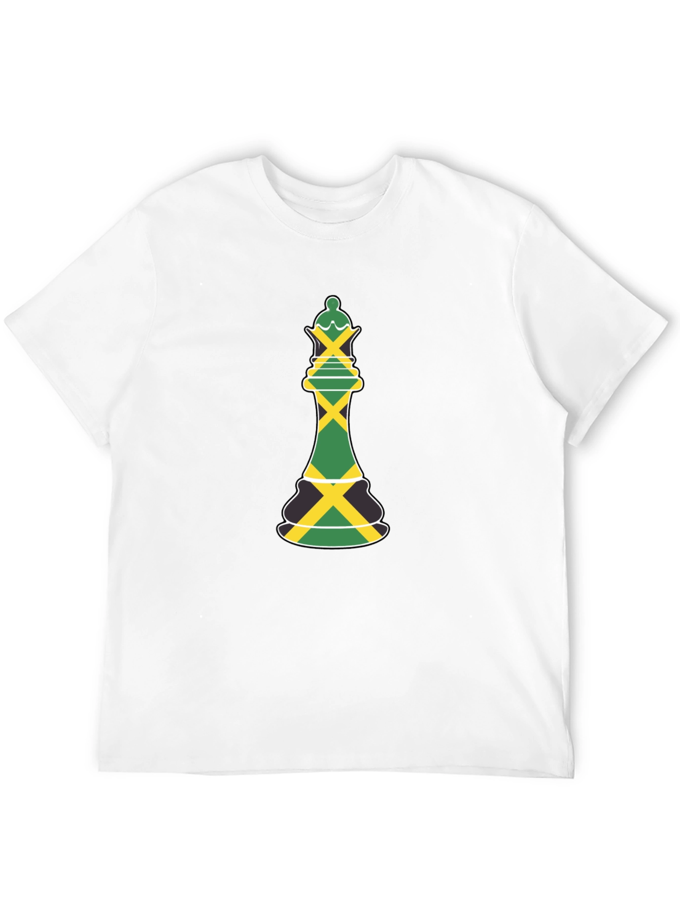 Show off your love for Jamaica and chess with this unique graphic tee! This black t-shirt features a bold and eye-catching design of a chess queen, decorated with the iconic Jamaican flag. Made from comfortable, breathable fabric, this t-shirt is perfect for casual wear, chess club meetings, or representing your Jamaican pride. The vibrant colors of the Jamaican flag contrast beautifully against the black background, making this shirt a real conversation starter. Get yours today and make a statement!