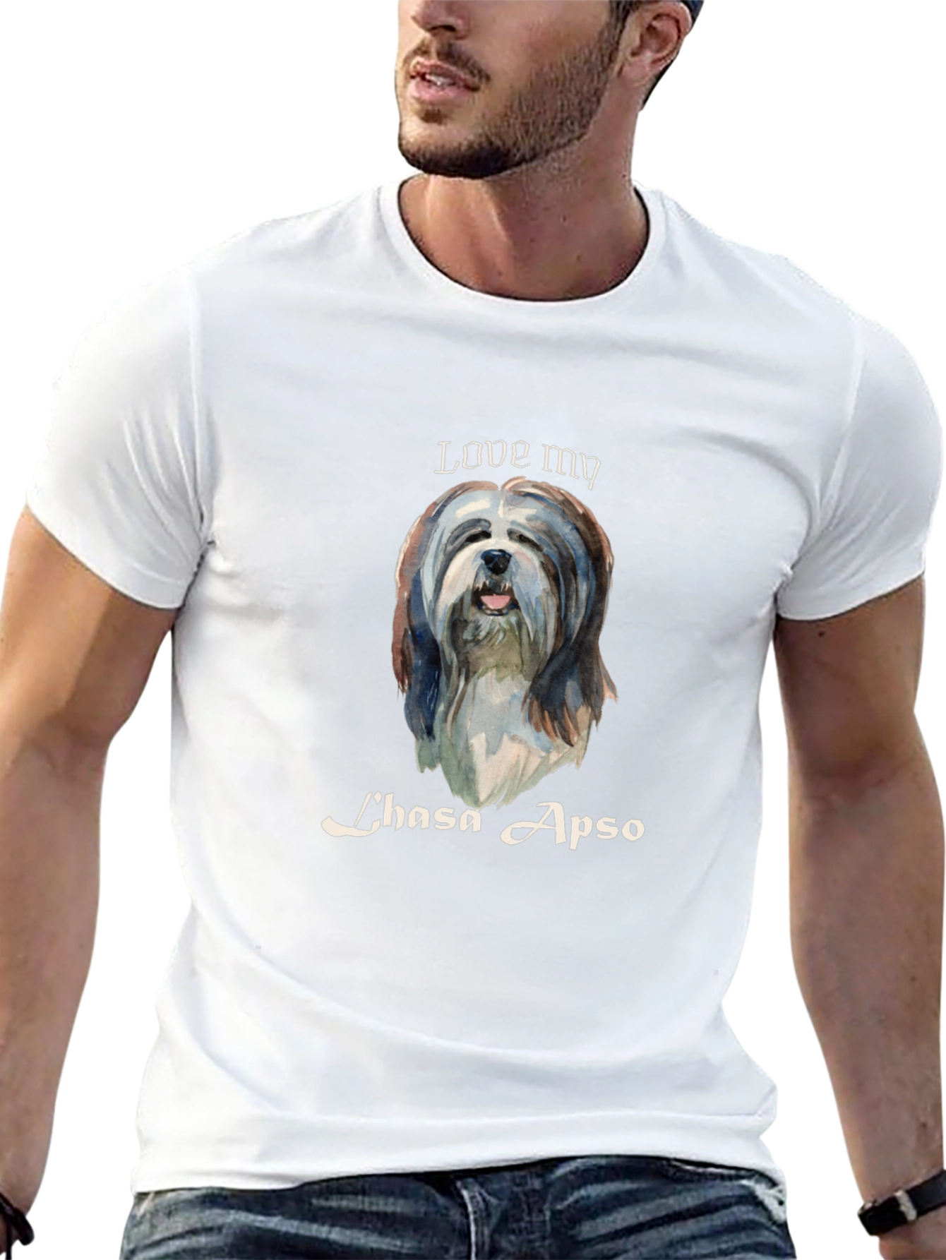 Show your love for your furry friend with this stylish black T-shirt! Featuring a charming watercolor-style illustration of a Lhasa Apso, paired with the heartfelt text "Love my Lhasa Apso," this tee is perfect for dog lovers. Made from a soft, comfortable fabric, it’s ideal for casual wear, dog walks, or simply lounging at home. The classic black color ensures it pairs well with any outfit. Express your passion for your beloved pet with this unique and eye-catching T-shirt.