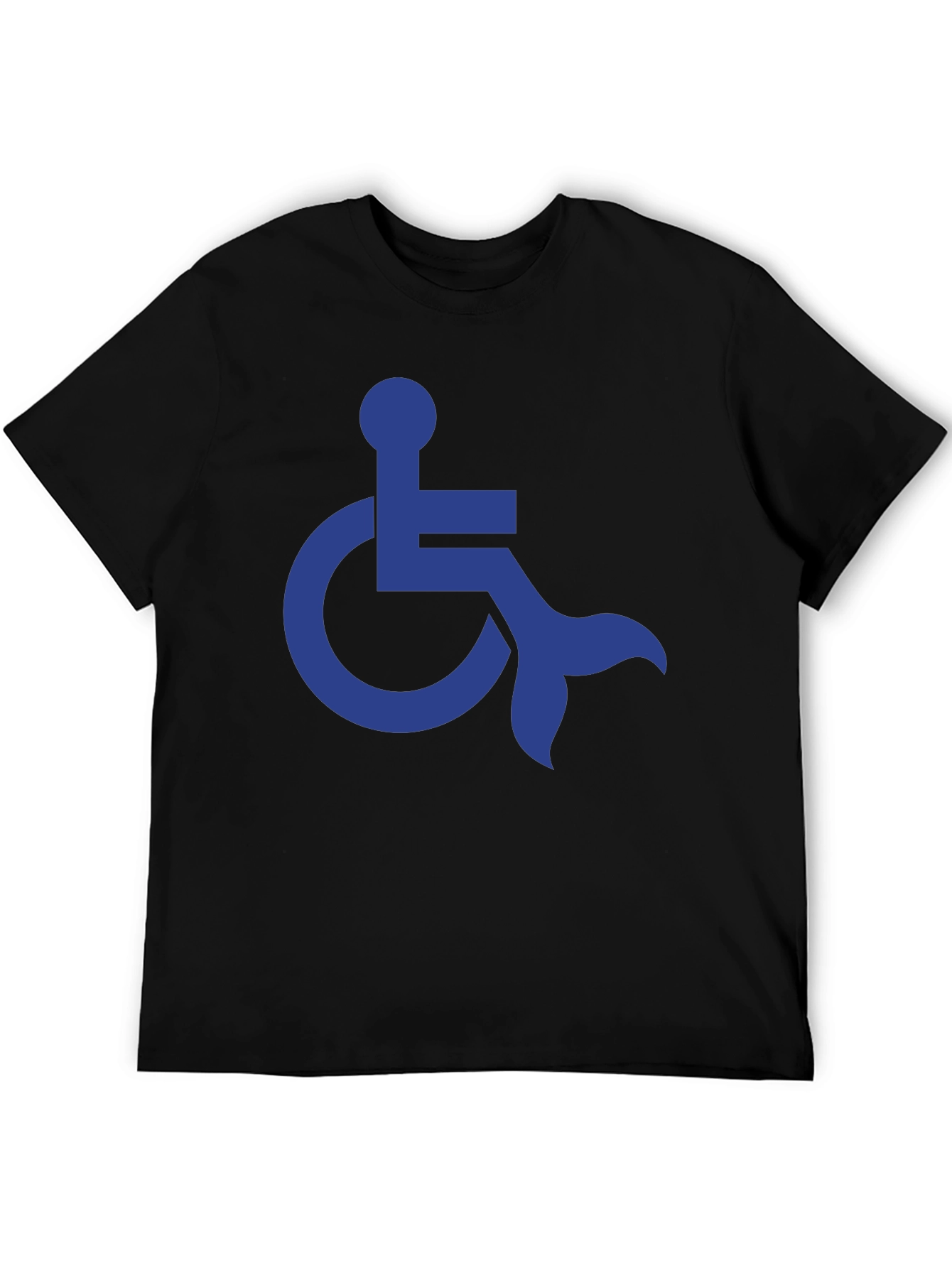 Show your support and solidarity with this unique graphic t-shirt. The design features a bold blue wheelchair symbol cleverly integrated with a mermaid tail, creating a playful and inclusive statement. Made from a soft and comfortable black fabric, this tee is perfect for everyday wear. Whether you're attending a disability awareness event or simply want to express your personal style, this eye-catching t-shirt is sure to turn heads and spark conversations. It’s a great way to promote visibility and celebrate diversity. Add this meaningful and stylish piece to your wardrobe today!