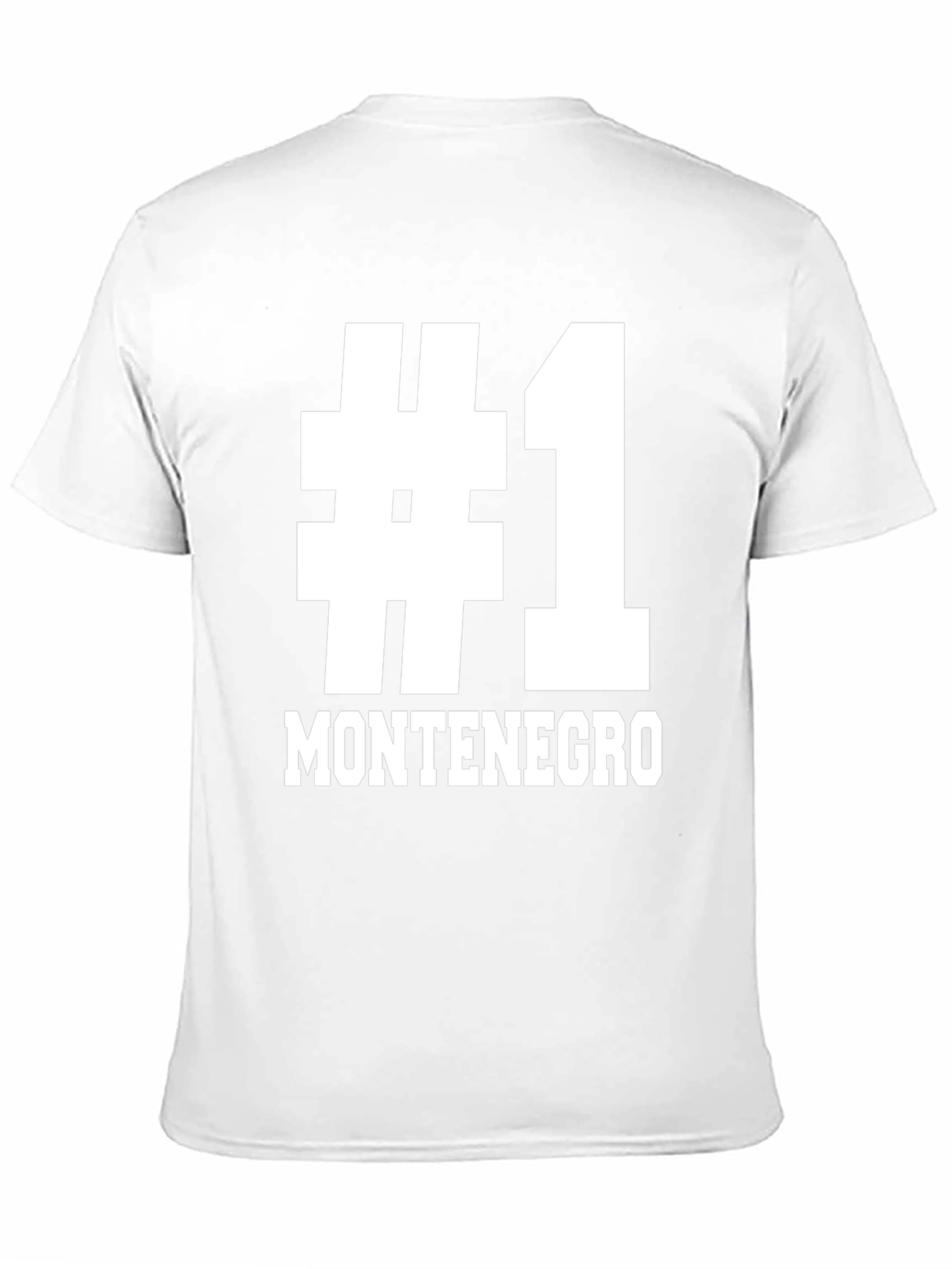 Show your support with this bold black t-shirt! Featuring a large, eye-catching white "#1" graphic above the word "MONTENEGRO", this shirt makes a statement. Made from a comfortable-looking fabric, it's perfect for casual wear, sporting events, or showing your love for Montenegro. The design is simple yet striking, ensuring you'll stand out in the crowd. Whether you're a native or a passionate fan, this t-shirt is the ideal way to express your enthusiasm. Grab yours today and represent your country with pride!
