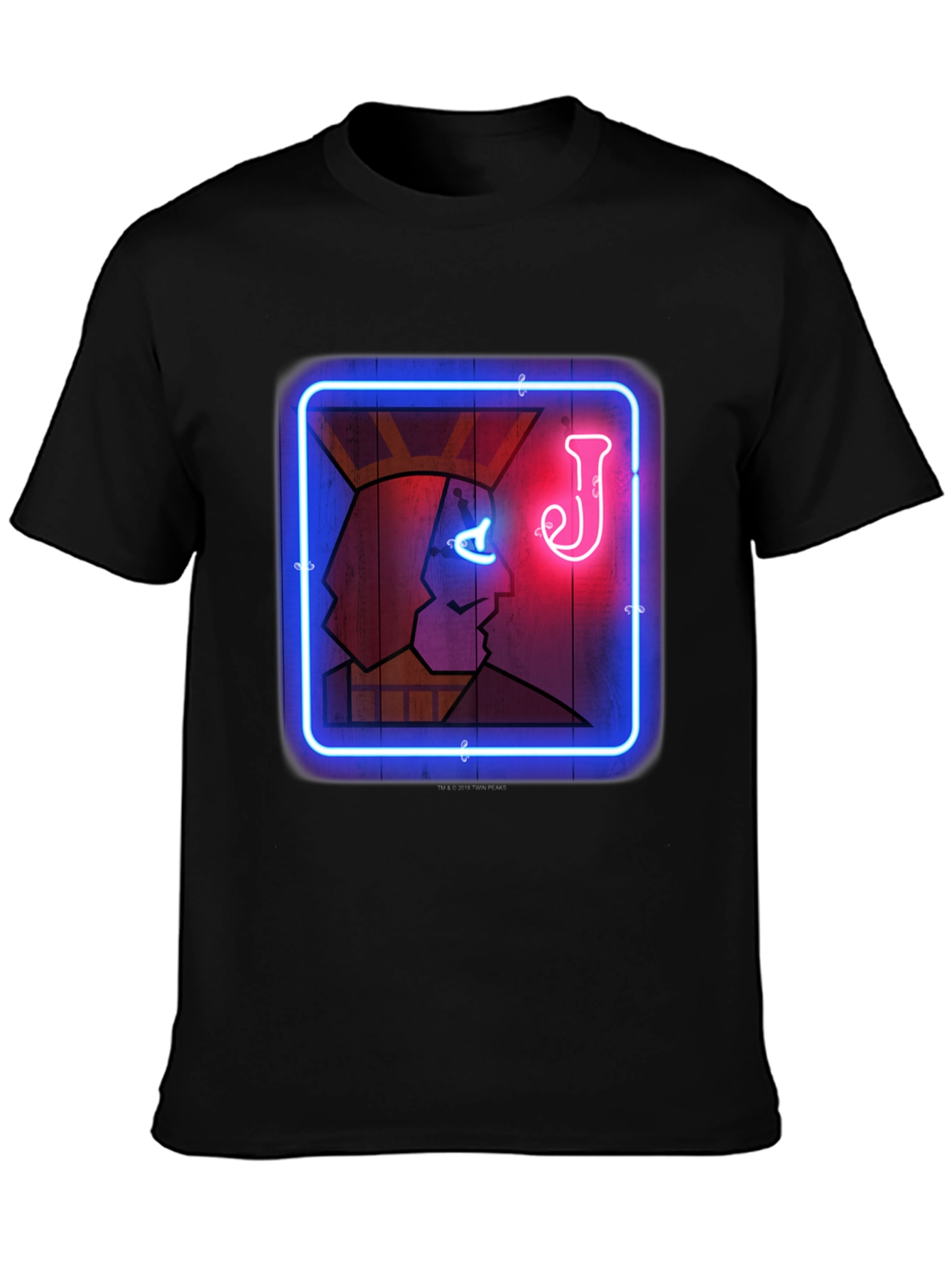 Show off your individual style with this eye-catching black t-shirt. It features a vibrant neon-style graphic of a Jack playing card, complete with a red "J" and a crowned figure. The design is framed by a bright blue neon-effect square, making it a real statement piece. This tee is perfect for casual wear, parties, or as a unique gift. Its soft fabric ensures comfort while the bold design guarantees you'll stand out from the crowd. Pair it with jeans, shorts, or your favorite bottoms for an effortlessly cool look. Make a statement without saying a word!