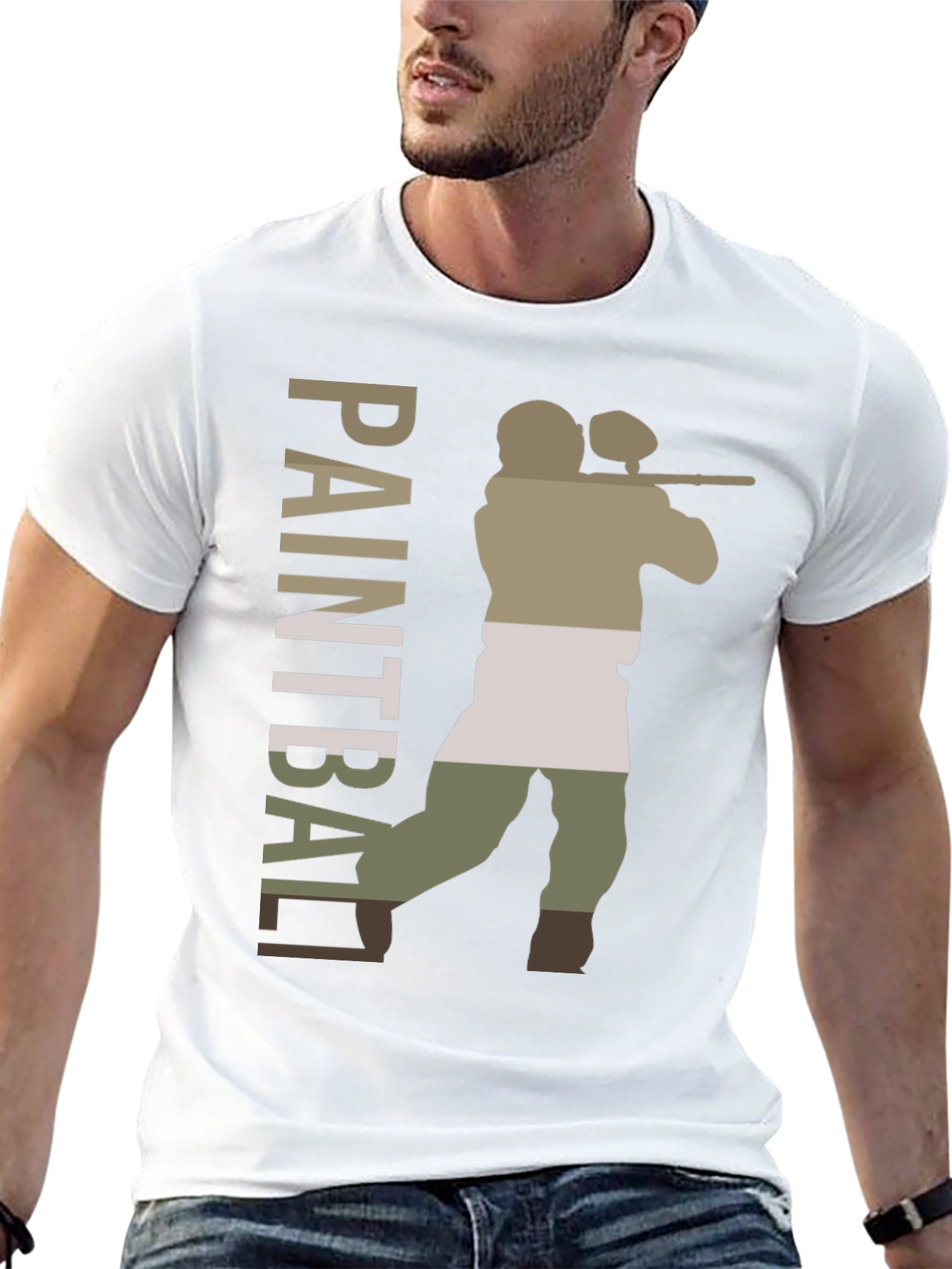Show off your love for paintball with this unique graphic tee! The black t-shirt features a bold, multi-toned silhouette of a paintball player in action. The word "PAINTBALL" is printed vertically beside the figure, making a statement. Crafted from a comfortable cotton blend, this tee offers both style and durability. Perfect for casual wear, paintball events, or as a gift for the paintball enthusiast in your life. Stand out from the crowd with this cool and eye-catching design!
