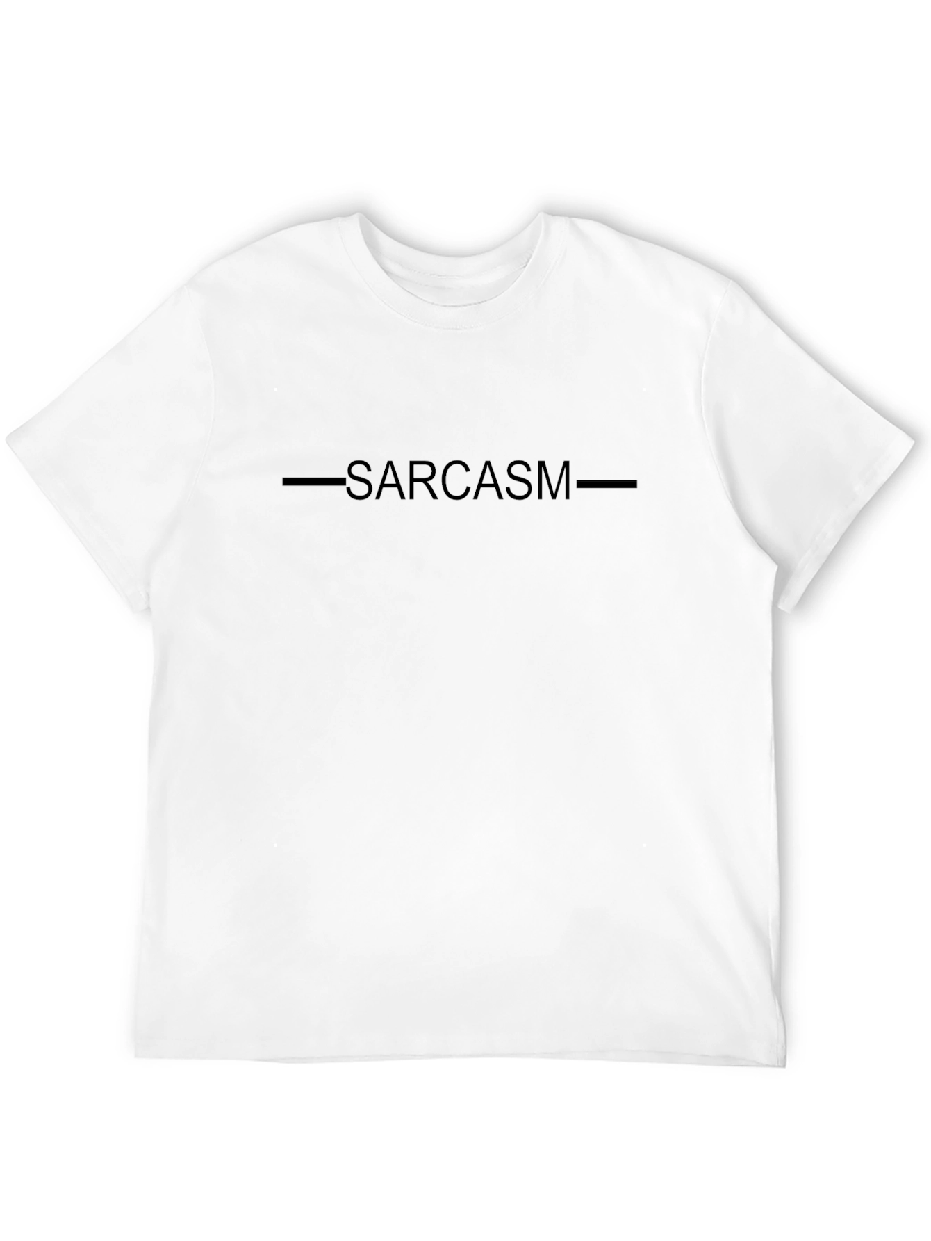 This classic black t-shirt features a bold "SARCASM" graphic design, perfect for those with a witty sense of humor. The design is minimalistic, with the word "SARCASM" centered between horizontal lines, creating a balanced and eye-catching statement. Made from what appears to be a soft and comfortable fabric, this tee offers both style and comfort. Ideal for casual wear, this t-shirt is perfect for expressing your personality. Dress it up with a jacket or keep it casual with jeans – this versatile tee is a must-have for anyone who appreciates a touch of sarcasm in their wardrobe. Show off your unique style and let the world know you have a sharp sense of humor with this fun and trendy graphic tee.