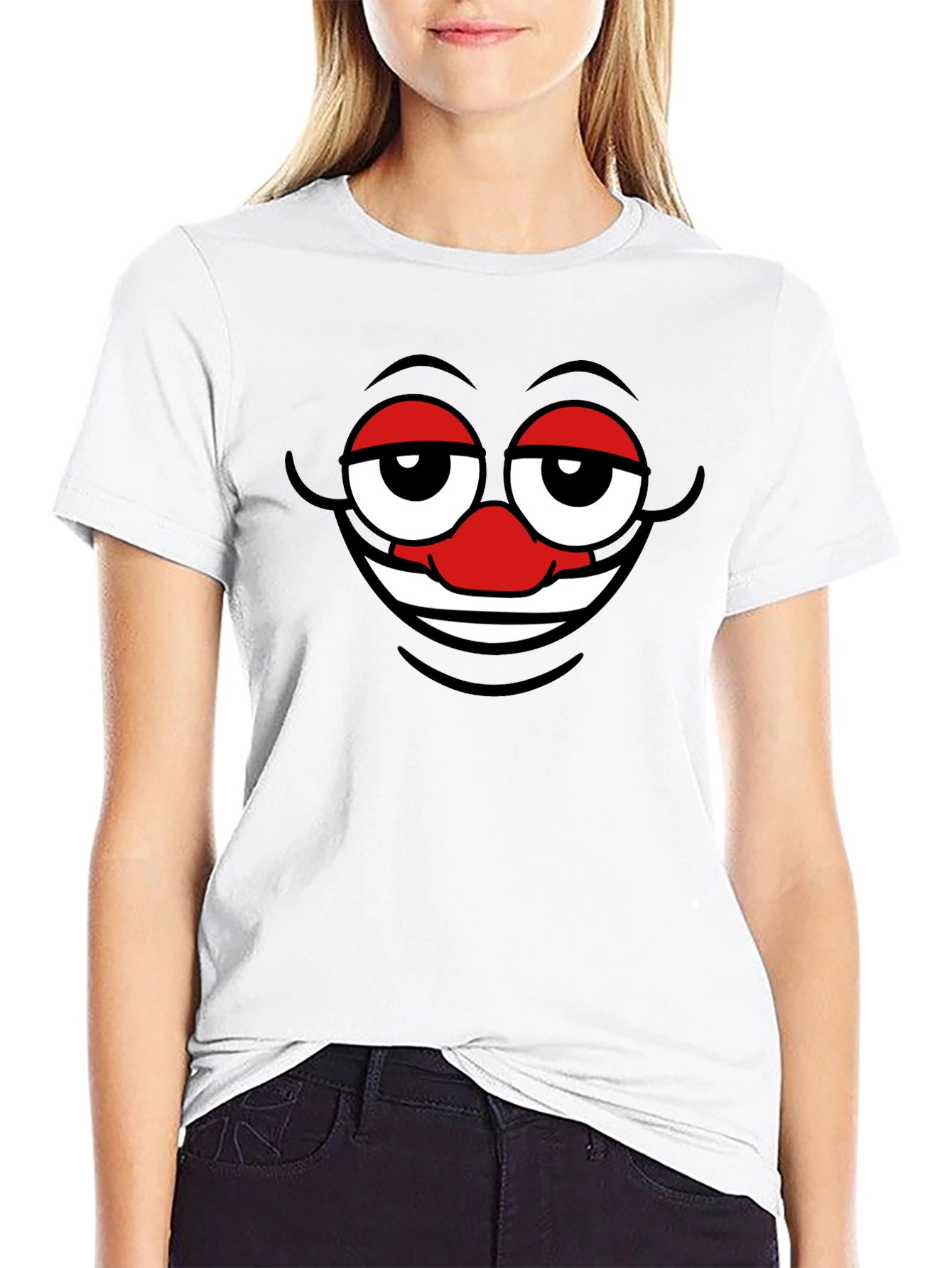 This stylish black t-shirt features a bold and fun smiley face design. The graphic includes red eyes, nose and a big white smile, all set against a dark black background. Made from comfortable material, this shirt is perfect for casual wear and adding a touch of humor to your everyday look. Ideal for expressing your fun side, this t-shirt can be worn for a variety of occasions, from casual outings to relaxed evenings at home. This is a must-have wardrobe addition for anyone who loves fun and original designs.