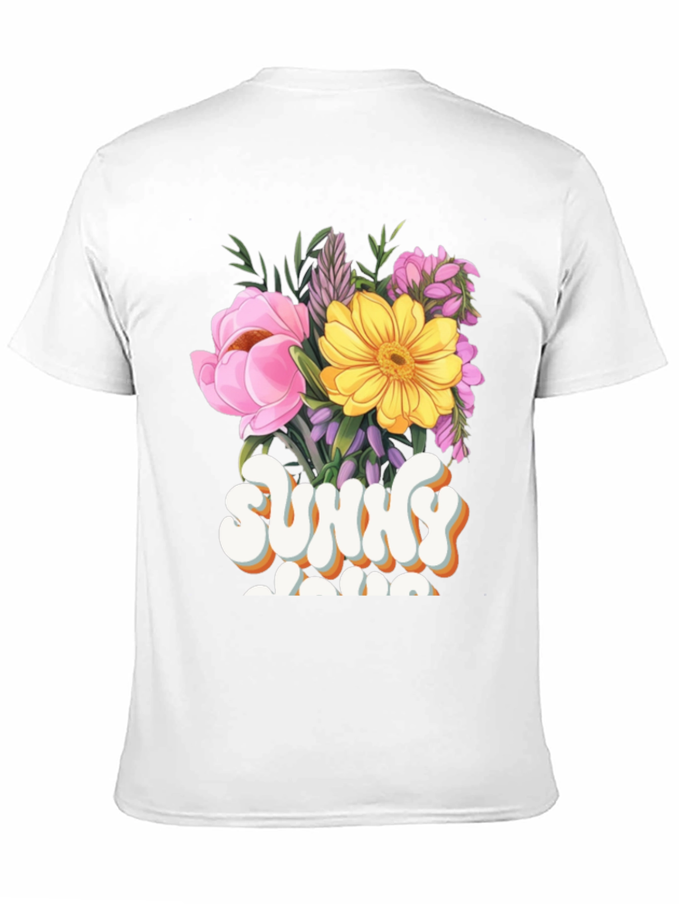 Embrace the sunshine with this vibrant black t-shirt featuring a beautiful floral design. The graphic showcases a mix of pink, yellow, and purple flowers, complemented by the words "Sunny Mama" in a retro, bubbly font. Made from a soft, comfortable fabric, this tee offers a relaxed fit that's perfect for everyday wear. Whether you're running errands, meeting friends for brunch, or simply lounging at home, this t-shirt is sure to add a cheerful touch to your outfit. Show off your sunny disposition and let your style bloom with this eye-catching tee!