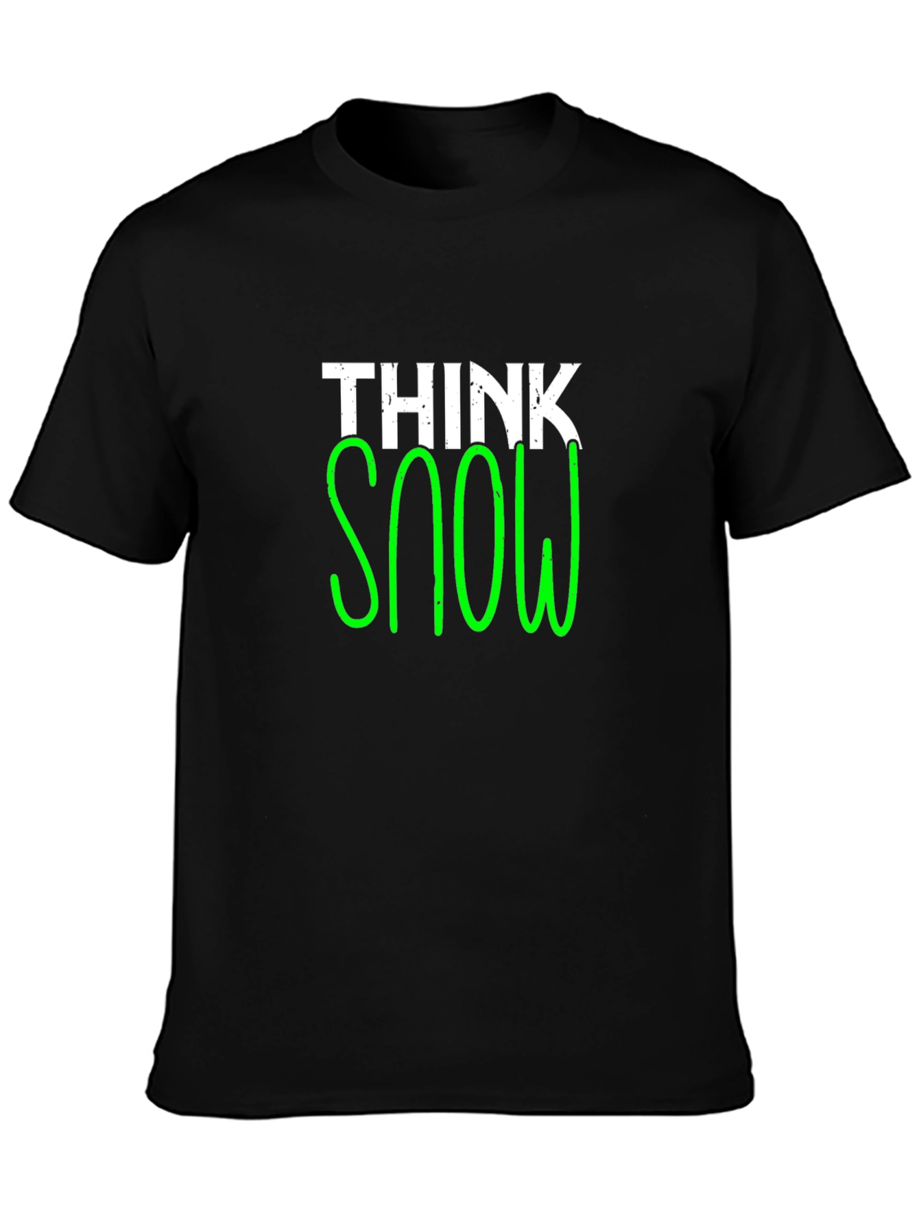 Show off your love for winter with this stylish black t-shirt. Featuring a bold "Think Snow" design with white block letters for "THINK" and vibrant green cursive letters for "SNOW", this tee is perfect for ski enthusiasts, snowboarders, or anyone who dreams of fresh powder. The classic fit and soft fabric ensure all-day comfort, making it ideal for casual wear, hitting the slopes, or cozying up by the fire. Get ready to embrace the winter spirit with this eye-catching t-shirt!