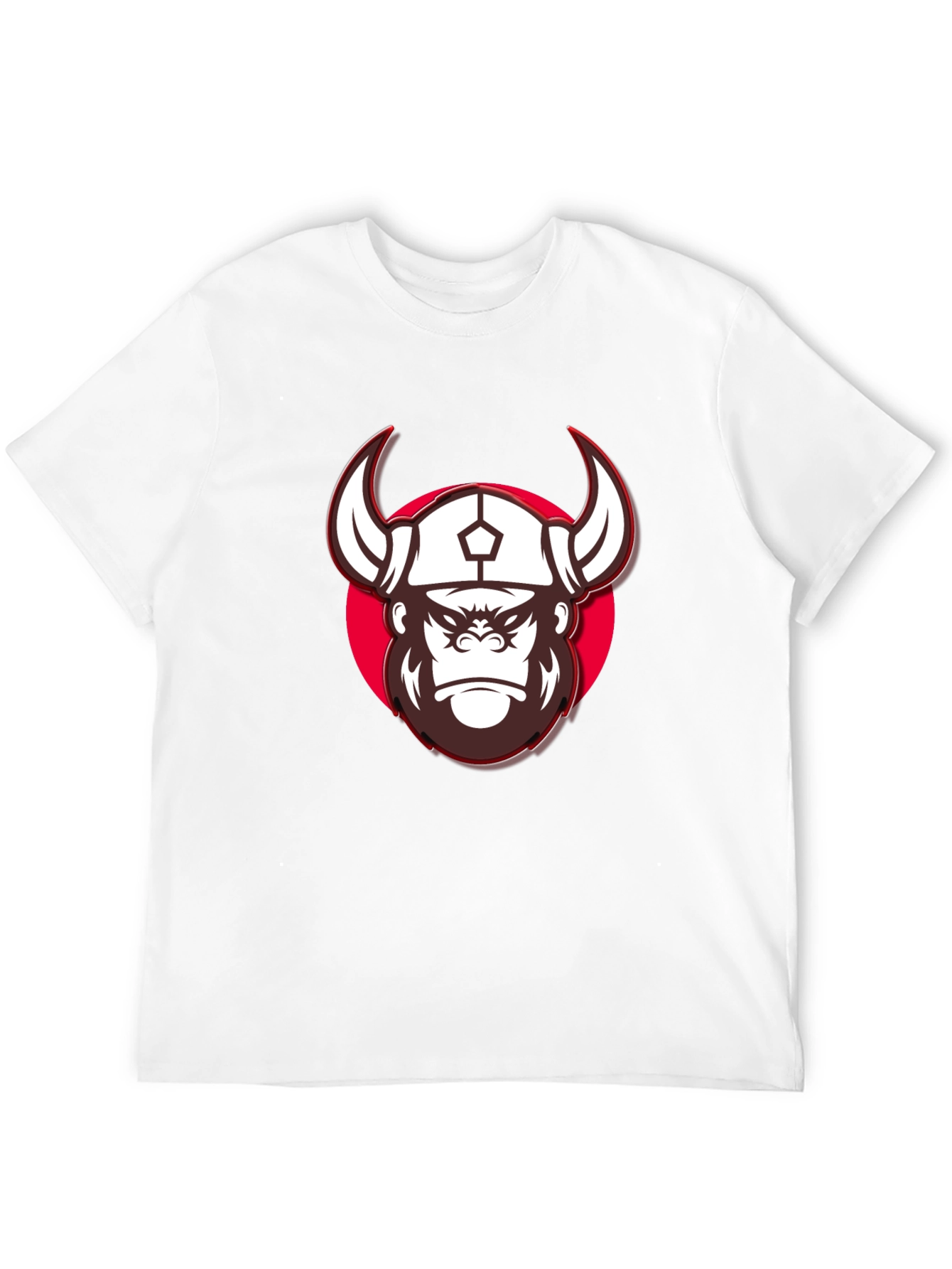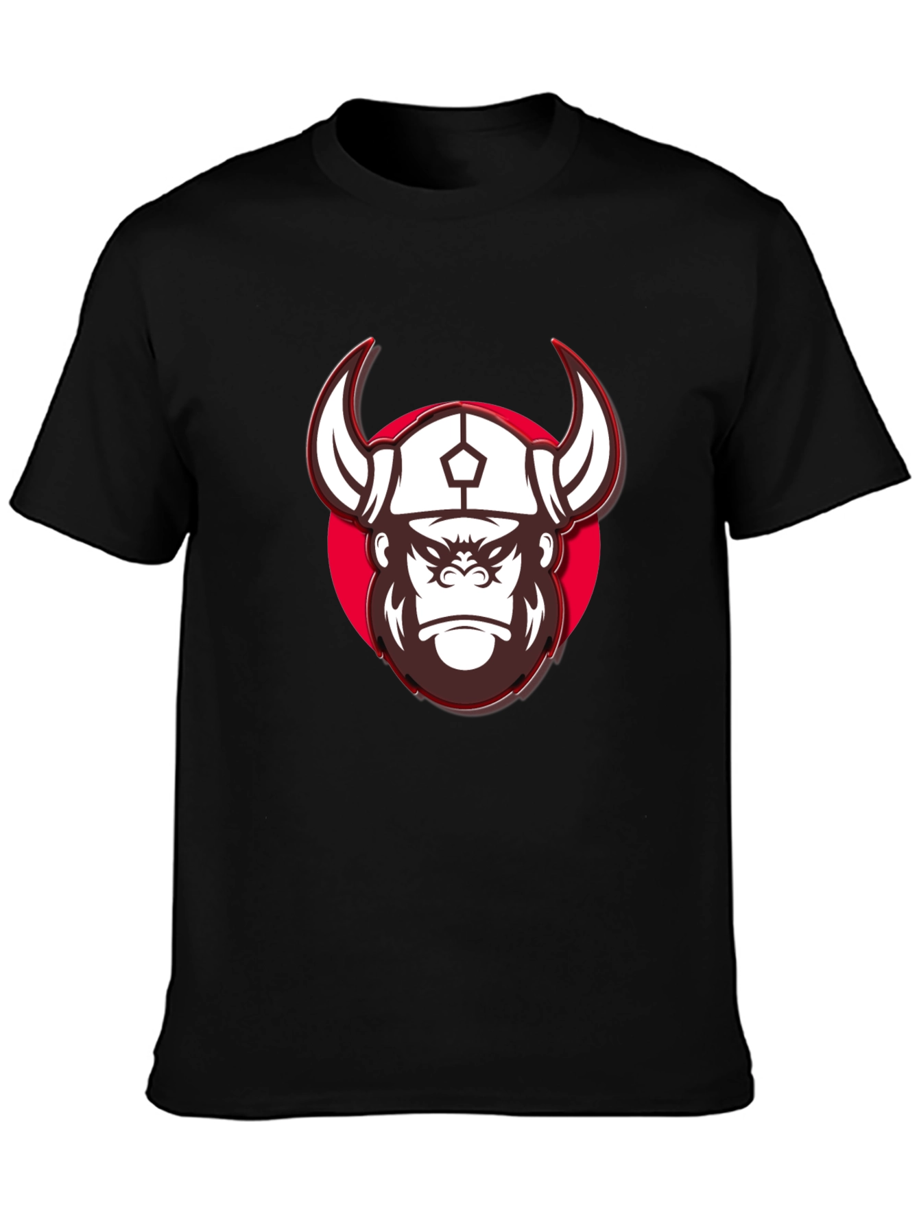 Show off your wild side with this unique Viking Gorilla graphic print t-shirt. The striking design features a fierce gorilla wearing a Viking helmet, set against a bold red circle. Made from comfortable, breathable fabric, this black t-shirt is perfect for everyday wear. Its eye-catching graphic adds a touch of edgy style to any casual outfit. Ideal for those who love unique designs, this tee is a must-have for your wardrobe. Stand out from the crowd and express your personality with this cool and comfortable t-shirt.
